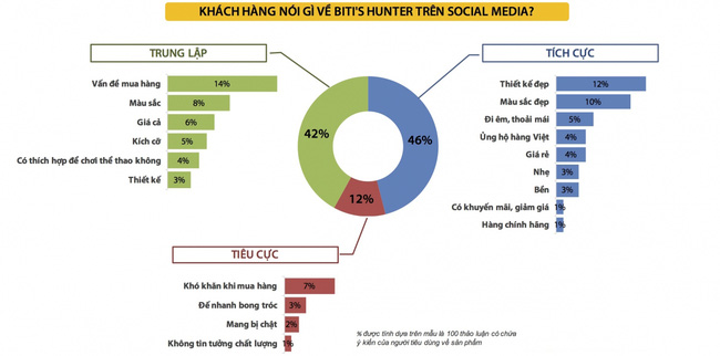 Từ đầu năm 2016, sản phẩm sneaker của Biti’s - Biti’s Hunter - đã tạo được một lượng lớn thảo luận trên các phương tiện truyền thông (hơn 21,000 thảo luận), trong đó Facebook là nguồn chính của thảo luận nhờ vào hoạt động tích cực của Biti’s trên fanpage. Tuổi đời già cỗi của Biti’s đã hoàn toàn nhường chỗ cho một nguồn sinh lực mới.