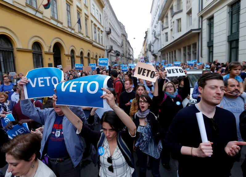 Trong khi đó, ở phía bên kia bờ Đại Tây Dương, hàng ngàn người dân đã xuống đường biểu tình phản đối khi Thủ tướng Hungary ra lệnh đóng cửa một trường đại học do Soros sáng lập.