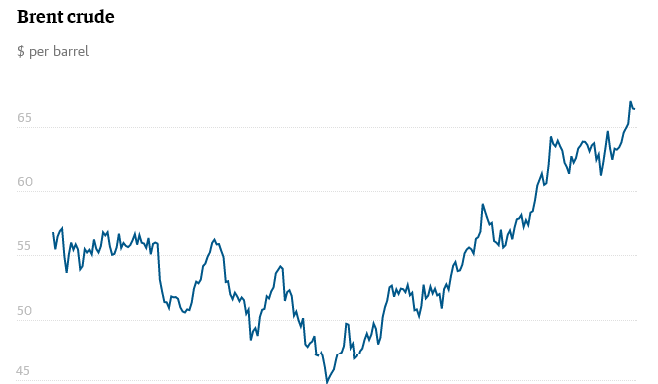 Giá dầu toàn cầu đã hồi phục mạnh trong năm 2017, do được hưởng lợi từ nhu cầu đang tăng lên ở các nhà máy trên khắp thế giới, đặc biệt là ở Trung Quốc, giữa bối cảnh các hoạt động kinh tế bùng nổ. Sau khi lao dốc vào cuối năm 2015 khiến các thị trường toàn cầu hoảng sợ, năm 2017 là năm giá dầu có được sự bình yên và tăng trưởng vững chắc. OPEC đã hạn chế sản xuất để kiểm soát nguồn cung, trong khi không có sự leo thang căng thẳng lớn nào để đẩy giá dầu lên các mức không bền vững. Tuy nhiên, vẫn có một cảnh báo: dầu đá phiến của Mỹ có thể trở lại, vì với mức giá hiện tại thì các nhà sản xuất sẽ có lời. Điều này có thể thúc đẩy nguồn cung, khiến giá lại giảm.