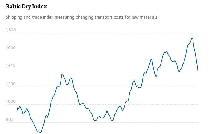 Chỉ số Baltic Dry được sử dụng như là thước đo sự tăng trưởng toàn cầu vì nó đo mức cước phí đối với các loại hàng hóa khô như than đá, gạo và lúa mì. Khi nhu cầu tăng nghĩa là nền kinh tế thế giới có sự tăng trưởng. Năm nay, chỉ số này đã tăng lên các mức cao nhất trong vòng 4 năm qua giữa lúc có sự hồi phục trong giao thương toàn cầu. Những hàn thử biểu khác dành cho tăng trưởng, như chỉ số PMI khảo sát hoạt động kinh doanh từ các giám đốc mua hàng của các công ty, đã cho thấy một nhu cầu lớn về hàng hóa và dịch vụ ở khắp các nền kinh tế phát triển trong những tháng gần đây. Tuy nhiên, chủ nghĩa bảo hộ ở Mỹ và châu Âu ngày càng tăng khiến cho nỗi sợ về một sự đổ vỡ trong giao thương vẫn còn lơ lửng.